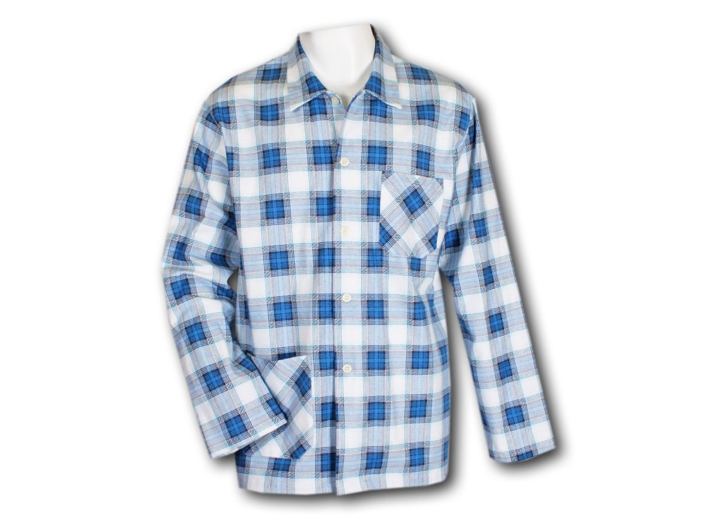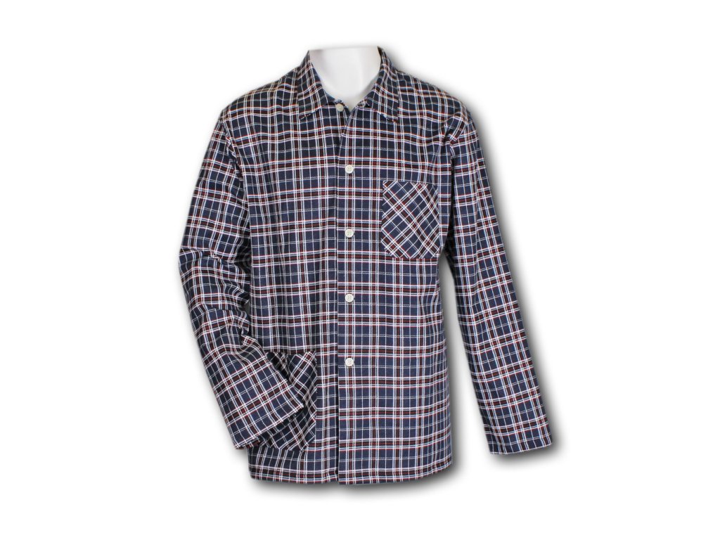 Pánský pyžamový kabátek z tištěného a oboustranně česaného flanelu, který se dá kombinovat s naším pánským pyžamem Jirka. Kabátek je s dlouhým rukávem a kapsičkami. Zapínání na knoflíky až ke krku, nebo možnost rozhalenky.